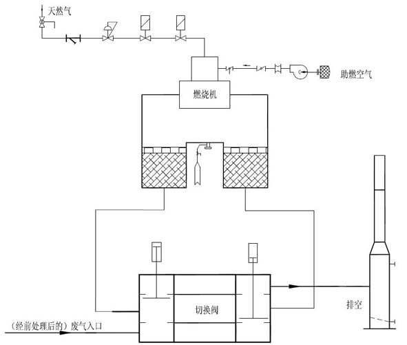 其原理是把有機廢氣加熱到760攝氏度(具體需要看成分)以上,使廢氣中的VOC在氧化分解成二氧化碳和水。氧化產生的高溫氣體流經特制的陶瓷蓄熱體,使陶瓷體升溫而“蓄熱”,此“蓄熱”用于預熱后續進入的有機廢氣。從而節省廢氣升溫的燃料消耗。陶瓷蓄熱室應分成兩個(含兩個)以上,每個蓄熱室依次經歷蓄熱-放熱-清掃等程序,周而復始,連續工作。蓄熱室“放熱”后應立即引入適量潔凈空氣對該蓄熱室進行清掃(以保證VOC去除率在98%以上),只有待清掃完成后才能進入“蓄熱”程序。否則殘留的VOCS隨煙氣排放到煙囪從而降低處理效率。